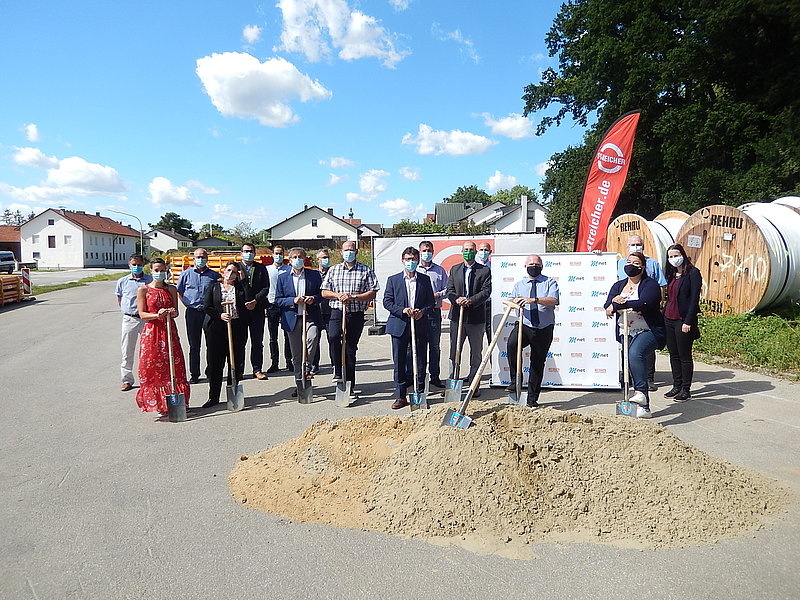 In der Gemeinde Bruckberg fand am 26.08.2020 der Spatenstich für ein millionenschweres Förderprojekt des Breitbandausbaus statt. Der Glasfaseranbieter M-Net erschließt gemeinsam mit der Energie Südbayern die Gemeinde Bruckberg mit zukunftsfähigen Internetanschlüssen. Bis Ende des Jahres 2021 werden 319 Privathaushalte und 25 Gewerbeimmobilien im gesamten Gemeindegebiet mit Glasfaser bis ins Haus und einer Bandbreite von mindestens 50 Mbit´s versorgt sein. Um den flächendeckenden Breitbandausbau zu bewerkstelligen, müssen 54 Kilometer Kabelgräben erstellt und anschließend 147 Kilometer Glasfaser und 64 Kilometer Leerrohre vergraben werden. Die Gesamtkosten belaufen sich dabei auf insgesamt 2,99 Mio. Euro. Die Fördermittel des Bundes, welche durch den Projektträger ateneKOM verwaltet und ausbezahlt werden, betragen bereits 1,49 Mio. Euro. Der Freistaat Bayern beteiligt sich über die Kofinanzierung mit einer weiteren Förderung von voraussichtlich 0,59 Mio. Euro. Der Eigenanteil der Gemeinde Bruckberg beträgt noch 0,89 Mio. Euro. Erster Bürgermeister Rudolf Radlmeier bedankte sich in seiner Ansprache bei allen am Projekt beteiligten Stellen für die bisherige gute konstruktive Zusammenarbeit und freut sich bereits jetzt, gemeinsam mit den künftigen Nutzern auf einen stabilen, schnellen und zukunftssicheren Internetzugang.